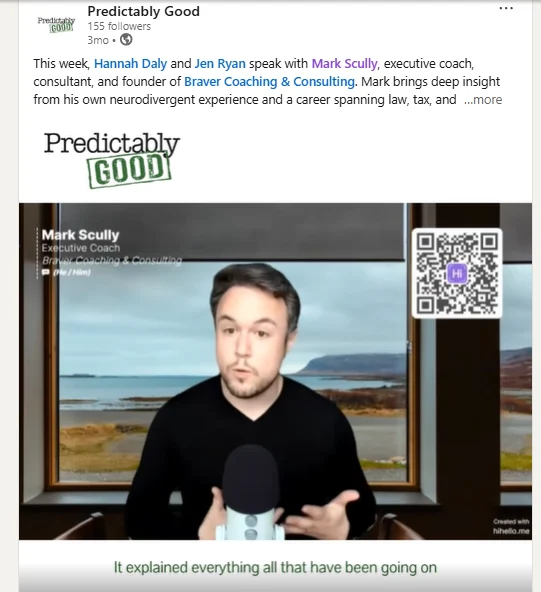It was my privilege to have Mark Scully join us as a guest speaker at the first group session for the National College of Ireland Certificate in Harnessing Neurodiversity in the Modern Workplace. Mark spoke without slides for 90 minutes and all present were enthralled by his openness, honesty, and wisdom in the area of Autism and diversity. It is a fortunate occurrence that Mark's Autistic diagnosis has led him to a career in coaching and consulting. Having spent a short time with Mark, I felt enriched and more at ease with my own diversity. Any organisation of any size could benefit from this man's wisdom.
